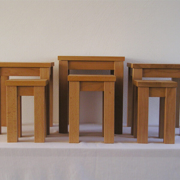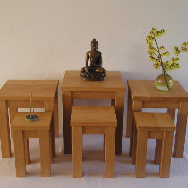 Massief beuken tafeltjes voor een mooie meditatieplek. Verkrijgbaar per stuk of per set van 6.